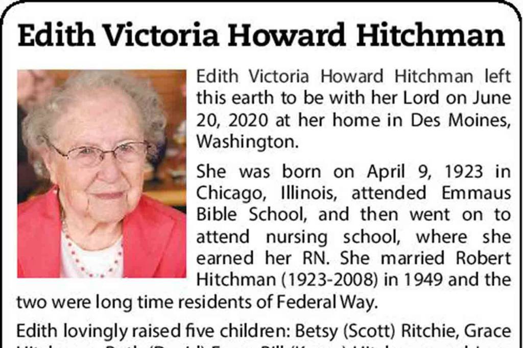 Obituary: Edith Victoria Howard Hitchman