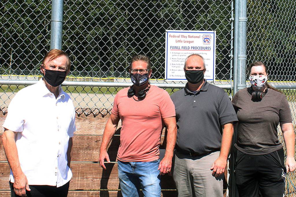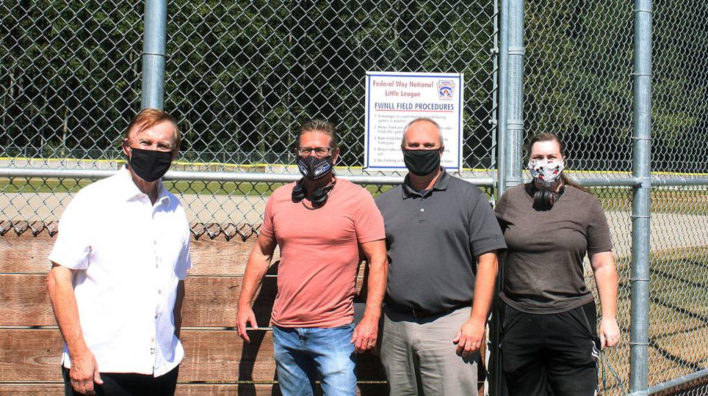 Photo L to R: King County Councilmember Pete von Reichbauer with Scot Henderson, Gary Haven, and Tara Brown of the Federal Way National Little League. Courtesy photo