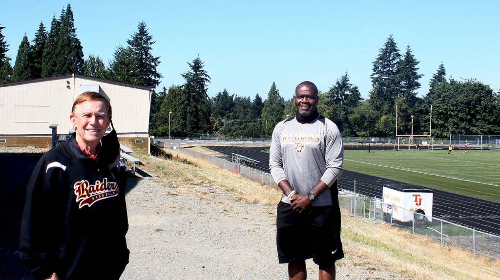 Photo L to R: King County Councilmember Pete von Reichbauer with Thomas Jefferson High School Baseball Coach Joseph Townsend. Courtesy photo