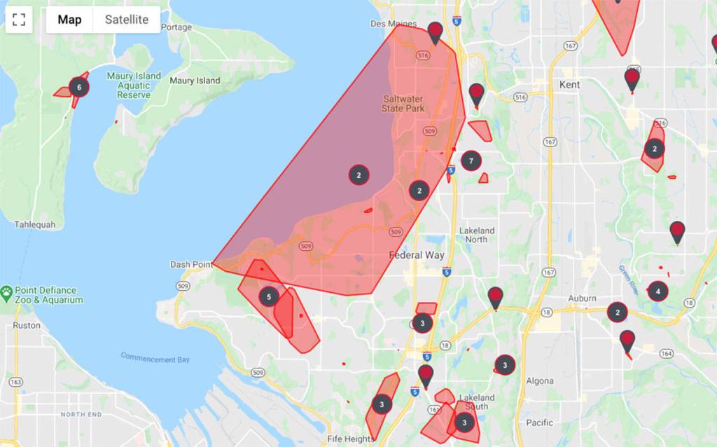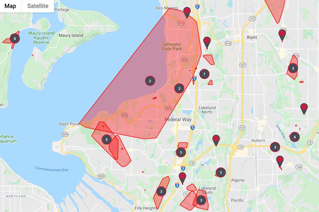 Puget Sound Energy power outage map shows several neighbors in Federal Way without power and at this time, there is no estimated time of repair.