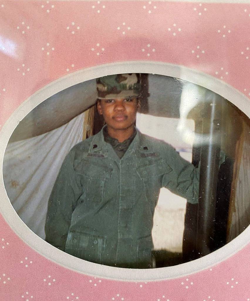 U.S. Army E-4 Specialist Trudy Davis enlisted in 1985 after finishing college in Washington, D.C. Davis said she remembers wanting to be a soldier just like her dad, who was a drill sergeant training soldiers. As a little girl, she remembers putting on his uniform and boots, marching around their basement.