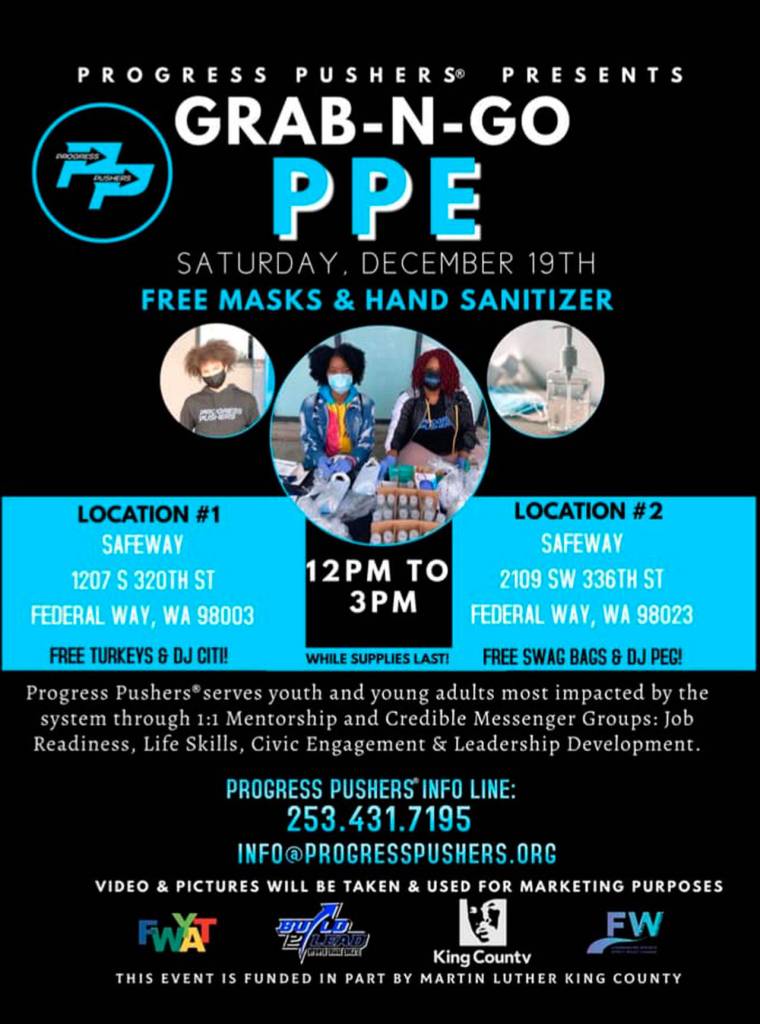 Local organization Progress Pushers will be holding two personal protective equipment grab-and-go events this Saturday in Federal Way.