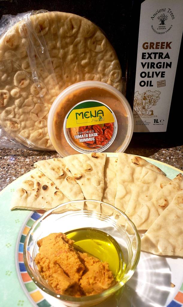 For a quick snack or light dinner, you can try the Mena sundried tomato and basil hummus with fresh pita bread.