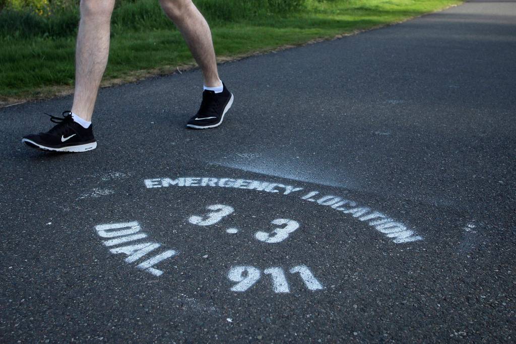 Markers are located every one-tenth of a mile along the entire BPA Trail, and fire engines, aid cars and police officers have maps showing the location of each marker. Markers are used like a home address, allowing first responders to accurately navigate to the emergency, according to South King Fire and Rescue.