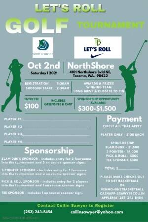 The golf tournament begin at 9:30 a.m. Oct. 2 at Northshore Golf Course (4101 Northshore Blvd NE) in Tacoma. Registration opens at 8:30 a.m.