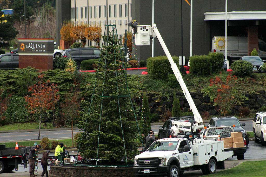 Federal Way Parks department employees decked the city’s holiday tree with lights on Nov. 19.
