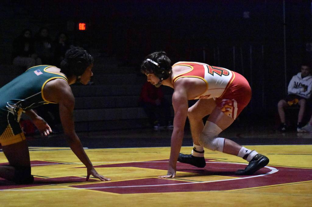 Right after, at 138-pounds Kayle Bearson won his match with an incredible reversal and pin in the first round for Thomas Jefferson. Brandon Morse, 145 pounds, came out victorious in his match as well, in a brutal and hard fought match. Morse left the mat with a bloody nose, but that didn’t stop him from toppling his opponent.