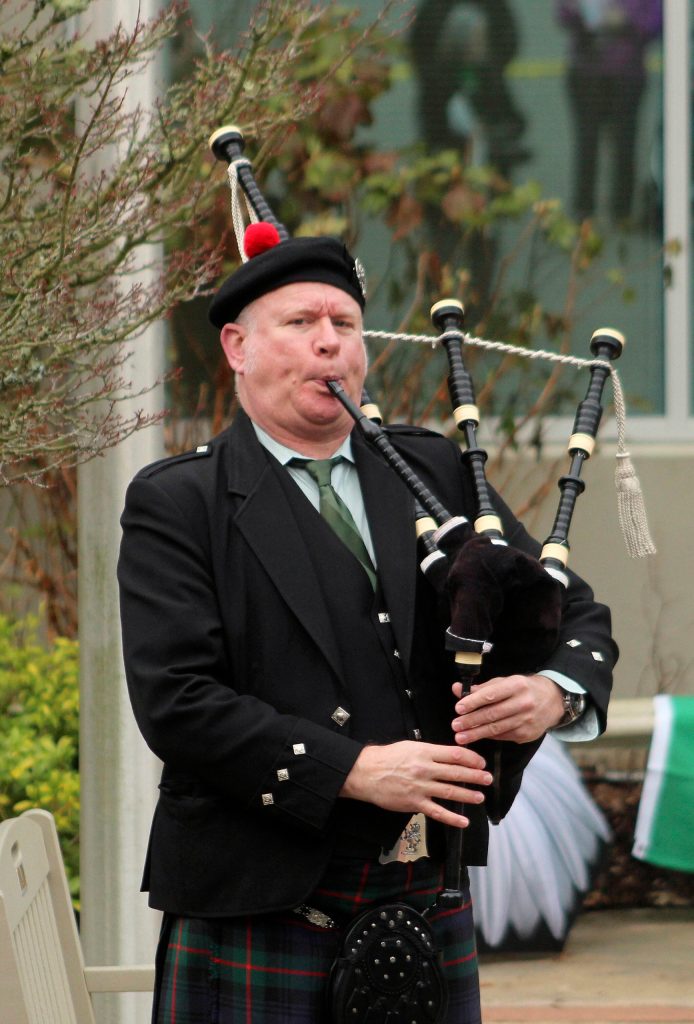 Susan Walker, owner of Fire & Ice Irish Dance Company in Federal Way, performed at the Thursday morning event. Seattle’s Bagpiper Neil Hubbard also performed several songs for the crowd.
