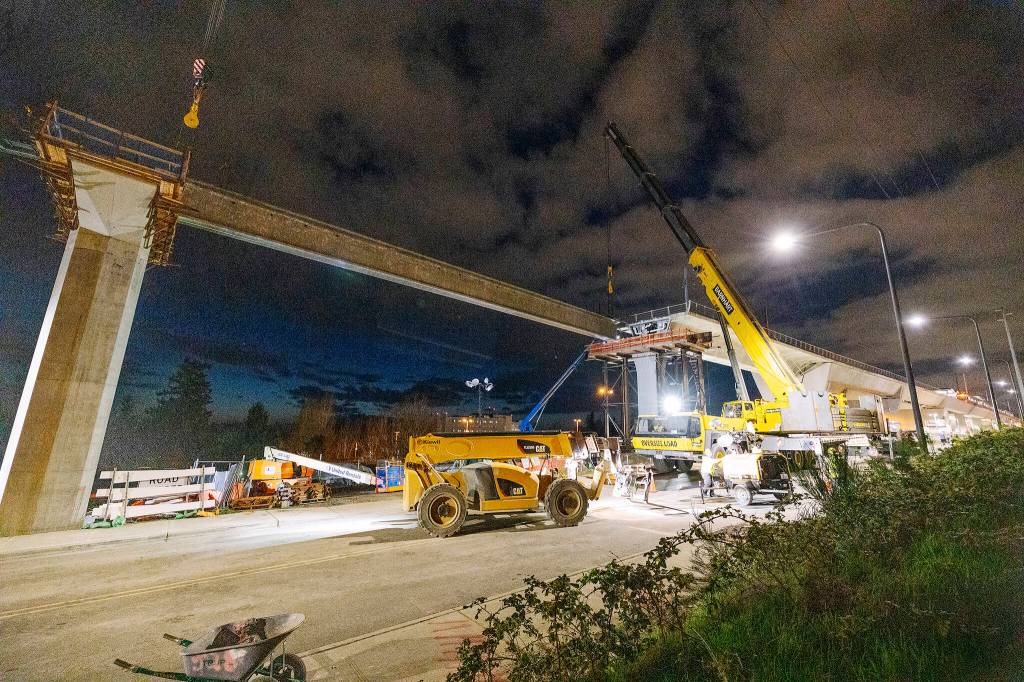 Three 124-foot girders were recently set in place overnight, joining with the existing system. To watch the process, view the video online.