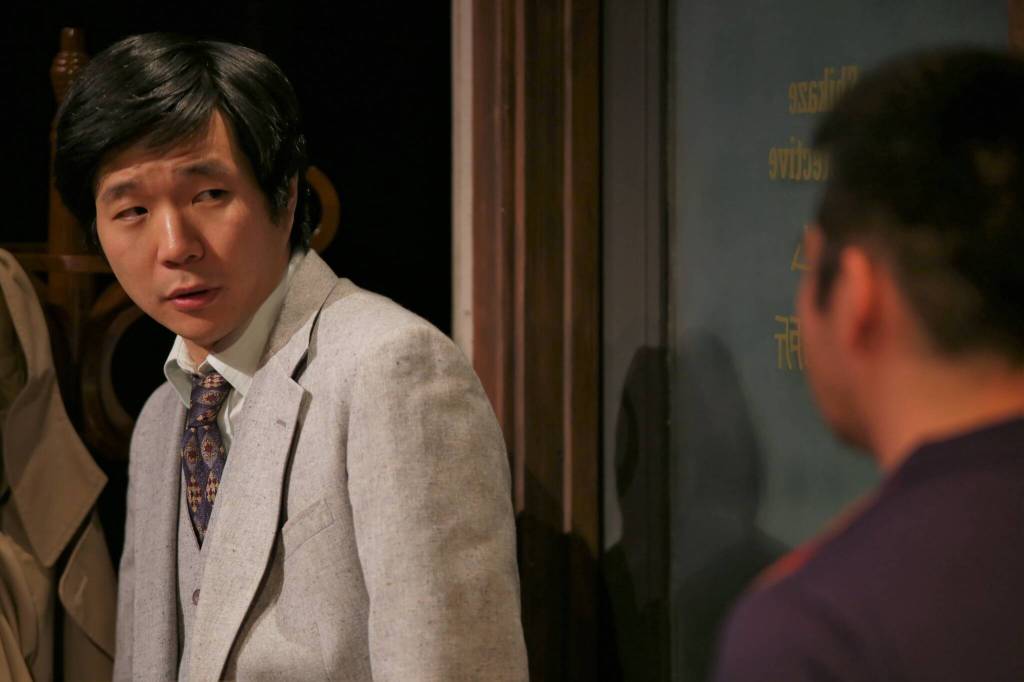 The sepia-toned set and 1970s costume immediately transports the audience into a rare noir world. Tim Takechi has impeccable timing as the dry, hardboiled detective, Sam Shikaze. Anamaria Guerzon is convincing as the persistent and pesky news reporter, Nancy Wing. Van Lang Pham, who plays Chuck Chan, has great comedic timing as does Travis Martinez, who plays Goldberg. Minki Bai as Capt. Kadota, Graham Arthur Blair as Sgt. Mackenzie, and Daniel J. Lacker as Superintendent Jameson, all deliver powerful as well as comical performances. Aya Hashiguchi Clark is so believable as the sweet restaurant owner, Rosie — it’s hard to imagine her as anyone else.