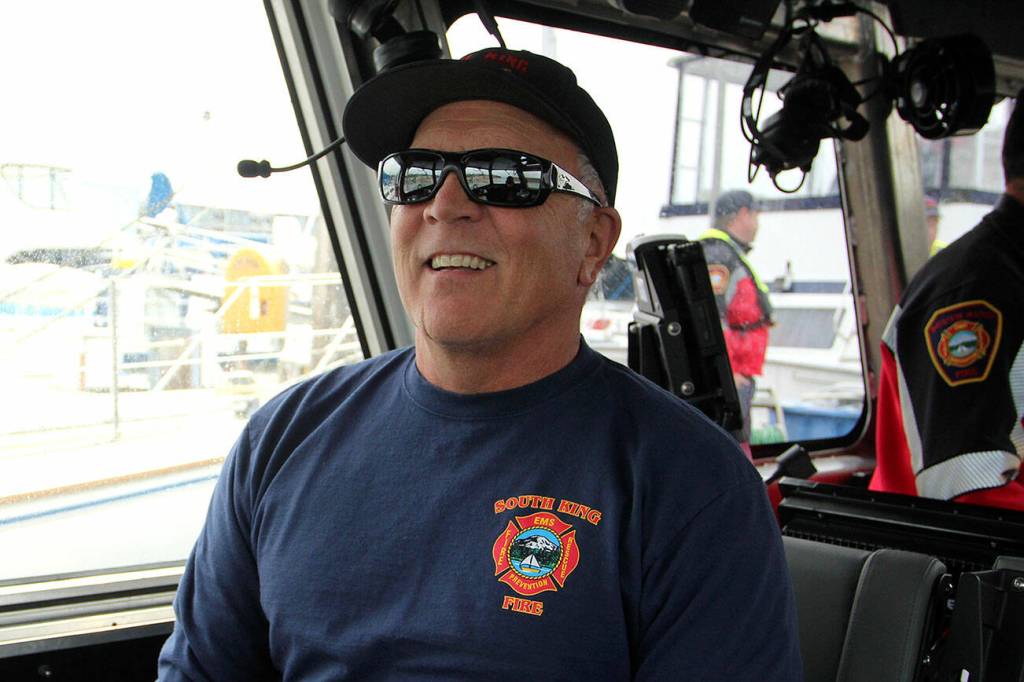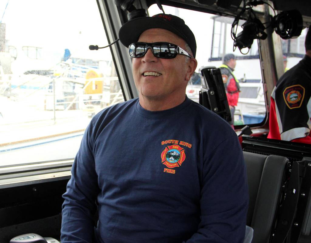 Fontana, who has been a member of the fire district’s Marine Team since its inception, boarded the new fire boat at the Des Moines Marina, slipped on a life jacket, and smiled from behind the helm.