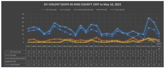 “In King County, there’s 350 to 400 suicides that happen every year. Unless it’s part of a murder-suicide, we have no idea whether or not those deaths are associated with domestic violence. We track homicides, but we don’t typically track corollary deaths,” Martin said.