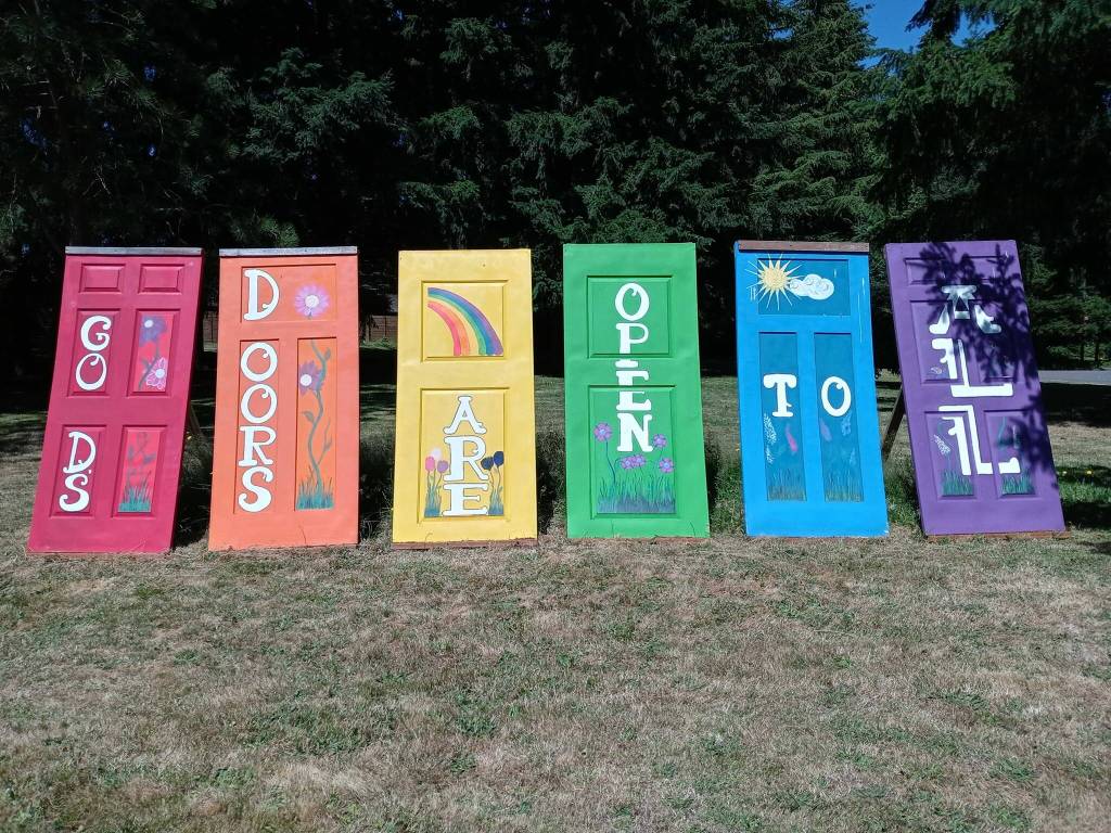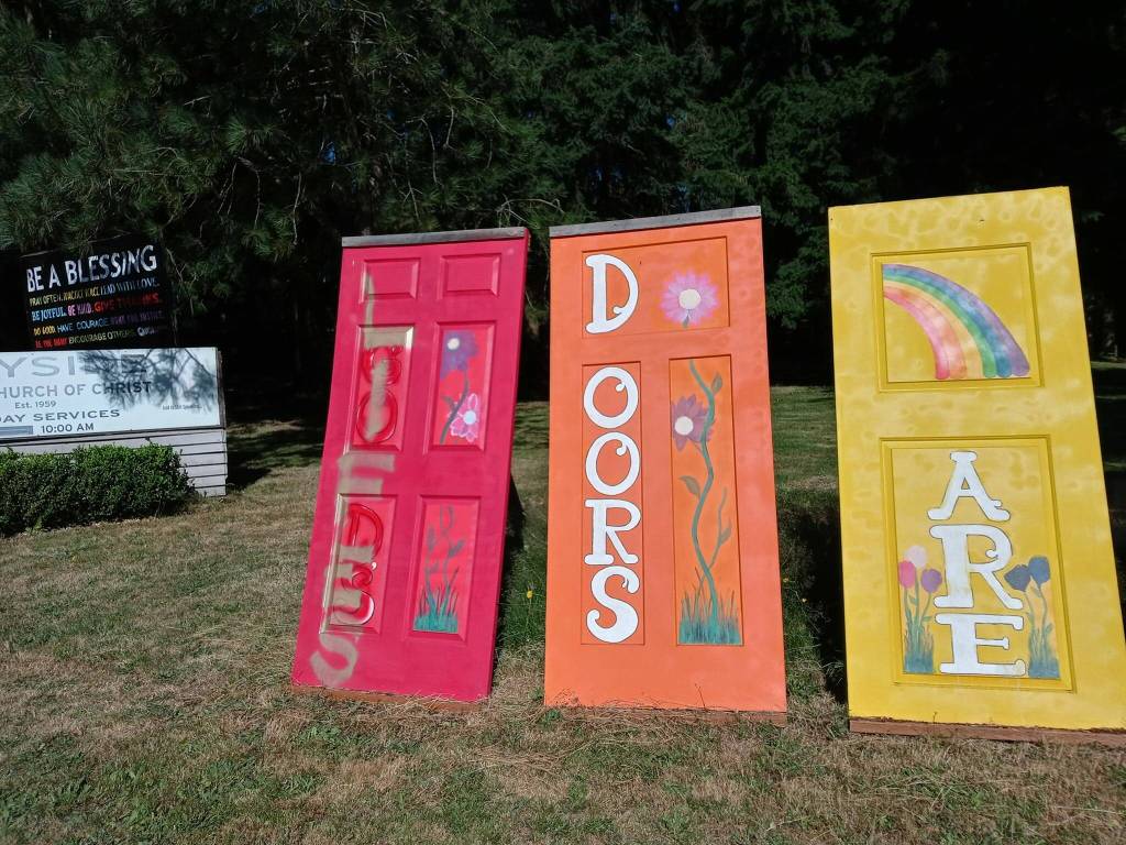 The Wayside United Church of Christ’s colorful welcome doors were defaced July 24, spray paint replacing the word ‘God’ in the message “God’s doors are open to all” to say “Life’s doors are open to all.”
