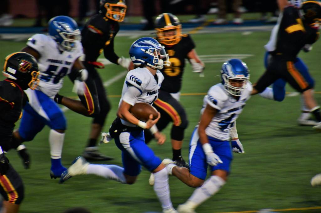 The Thomas Jefferson Raiders hosted the Federal Way Eagles on Sept. 9 at Memorial Stadium. The Eagles were able to capitalize on a couple punt returns for touchdowns early in the game and cruised to a 33-0 win.