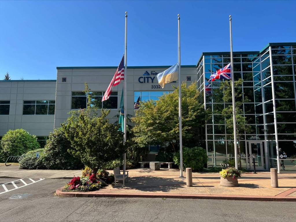 Mayor Jim Ferrell ordered the flag of the United Kingdom to be flown at City Hall on Sept. 19 as the world pays its respects to her late Majesty Queen Elizabeth II. Photo courtesy of the City of Federal Way.