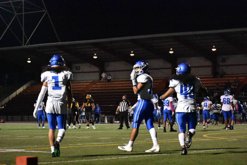 A few minutes later in the third quarter, two Raiders broke through the KM offensive line and blocked a punt with the ball bouncing out of bounds at the three yard line. The Raiders punched the football into the end zone on a three yard run from senior Josue Toledo. That ended the third quarter with a score of 21-25, the Royals clinging to a four point lead.