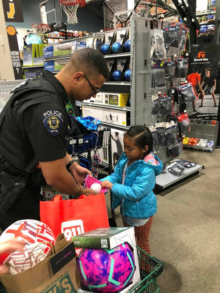 The Federal Way Police Department partnered with Dick’s Sporting Goods on the morning of Dec. 19 at The Commons mall to brighten the day of some deserving local kids this holiday season.
