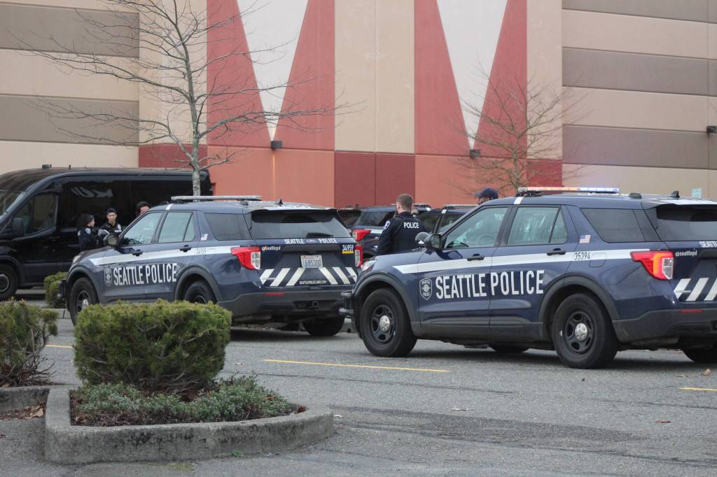 The Seattle Police Department (SPD) received multiple 911 calls between 10:28 a.m. to 11:48 a.m. involving several suspects in a silver Kia and a red Kia; both cars were later discovered to be stolen vehicles.