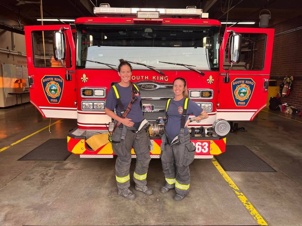 Just a few months ago, South King Fire and Rescue (SKFR) Lt. Ann Hoag and Firefighter Amanda Weed posed for a photo wearing bunker gear in front of an engine at Station 63. They each held up an ultrasound photo, bellies rounded.