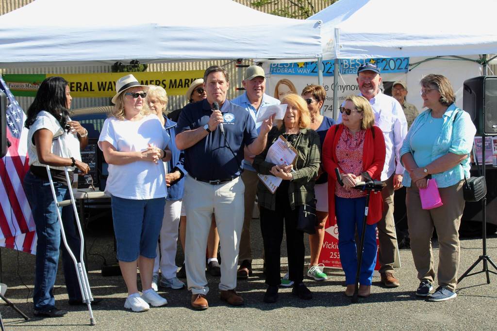 The Federal Way Farmers Market got some of its start through funding from the Lodging Tax Advisory Committee, council member Jack Dovey said, joined by other city leaders at the opening ceremonies May 13.