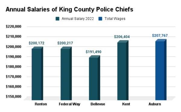 Chiefs Andy Hwang of the Federal Way Police Department and Schuldt of the Renton Police Department held similar salaries with annual salaries of $200,217 and $200,172 respectively.