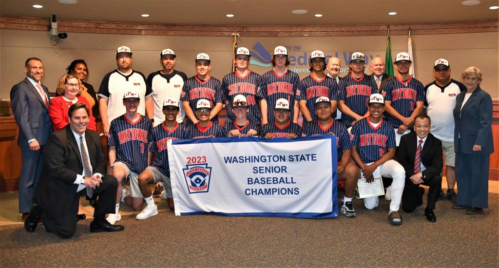 • The city and council honored the Federal Way Little League Seniors, who won the state baseball championship and will represent Federal Way and Washington State at the West Regional Senior Little League All-Star Tournament from July 20-26 in Oakland, California. To support the team financially, visit: gofundme.com/f/fwnll-senior-all-stars-headed-to-regionals