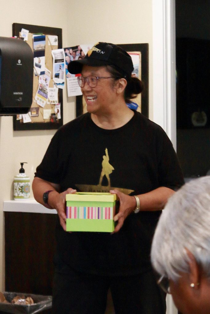 Helena Reynolds is a Federal Way community member who partnered with Mary Anne Hamilton to write the book about her life as the descendent of a U.S. Founding Father. Helena connected with Mary Anne through the Alexander Hamilton Awareness society and here prepares to draw names for a free copy of the new book.