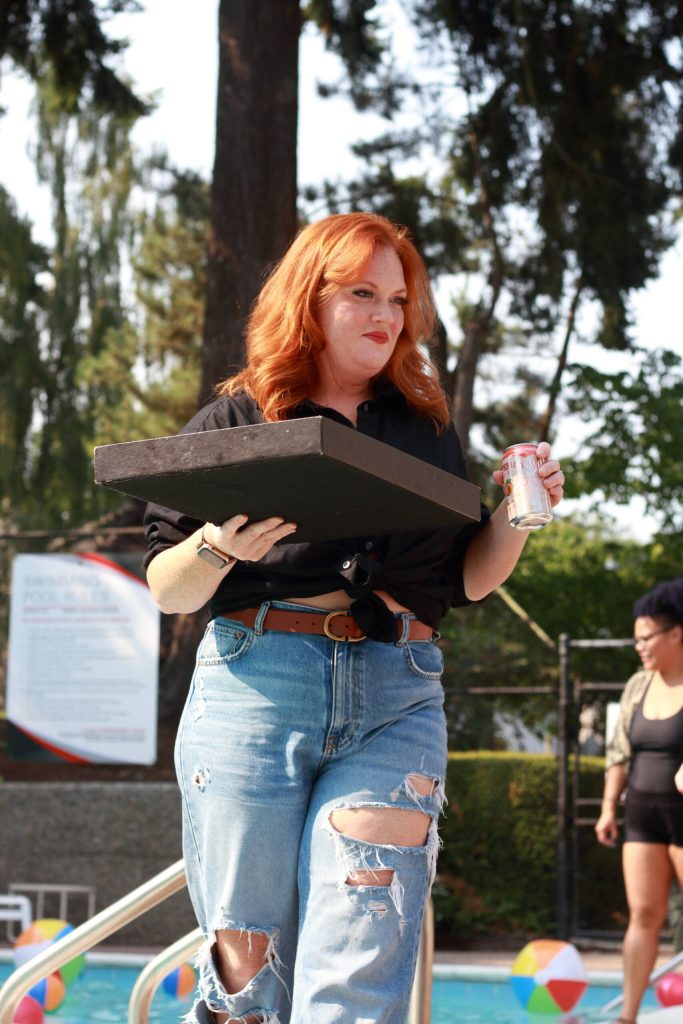 Kristin Speakman joins the fun with her team at a pool party team Energizer event for Bella Red employees.