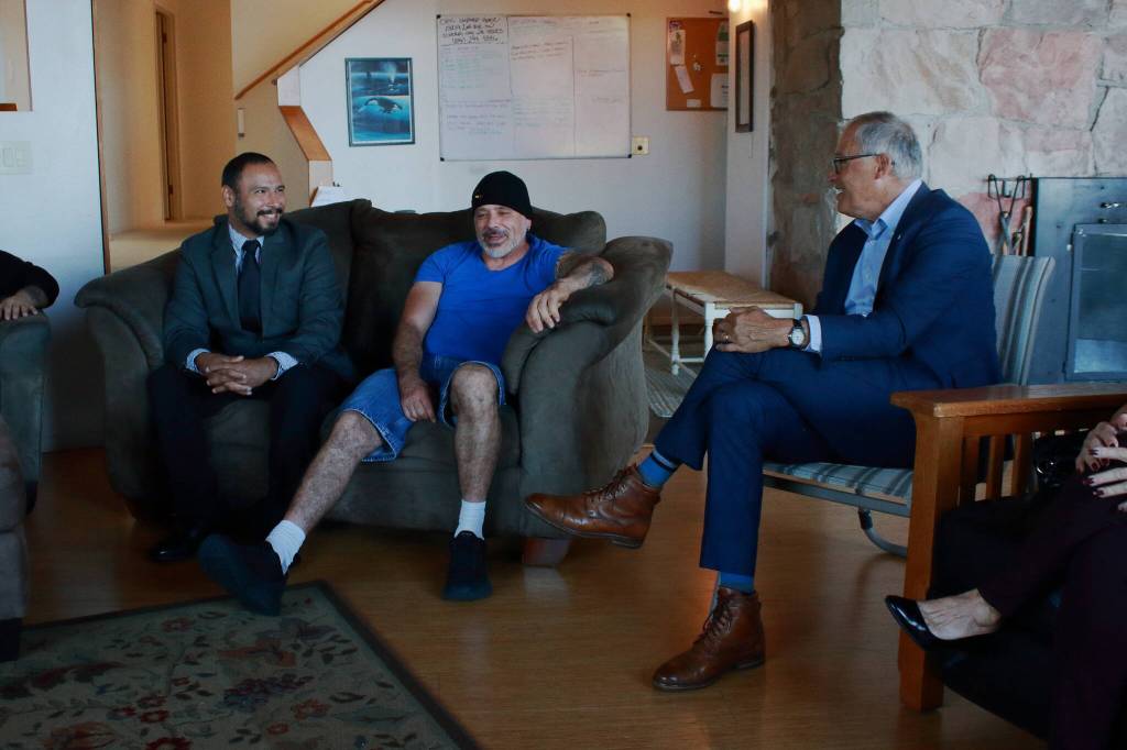 Washington State Governor Jay Inslee visited an Oxford House in Federal Way on Oct. 6 to talk with people in recovery from substance abuse.