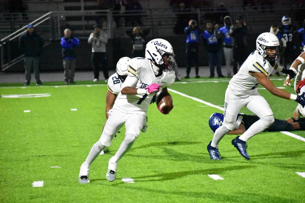 Federal Way was driving, looking to take the lead on the Gators. The Eagles ran a screen pass and Prum hit the wide receiver and the ball popped out into the hands of Jaliel Anderson, giving Decatur possession with a chance to put the game on ice.