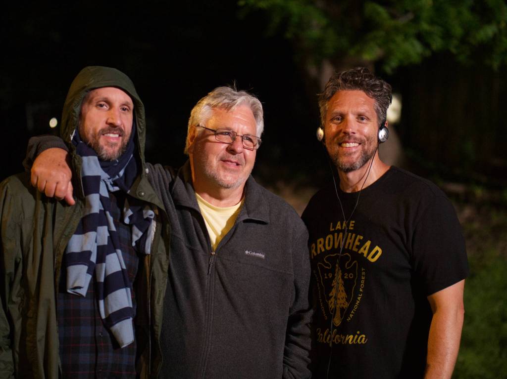 Kerry Bellessa with his dad, Clark Bellessa (Federal Way resident) and brother Aaron Bellessa (Seattle resident) when they visited on set. Photo by Shaun Greenspan