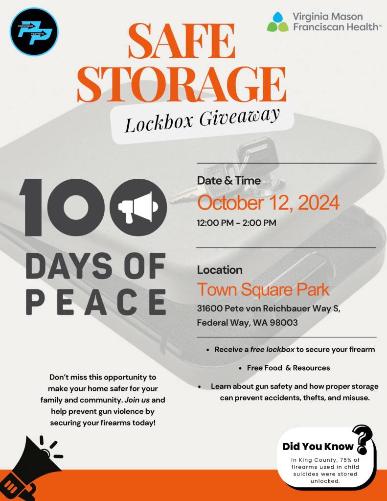 Virginia Mason Franciscan Health, Progress Pushers, and King County Regional Office of Gun Violence Prevention are teaming up to give away 150 lockboxes at the park, 31600 Pete von Reichbauer Way S.