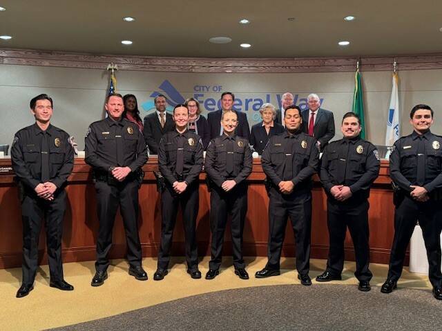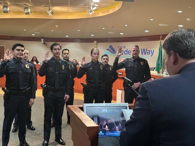 At the April 1 Federal Way City Council meeting, new hires and lateral transfer police officers were sworn in.