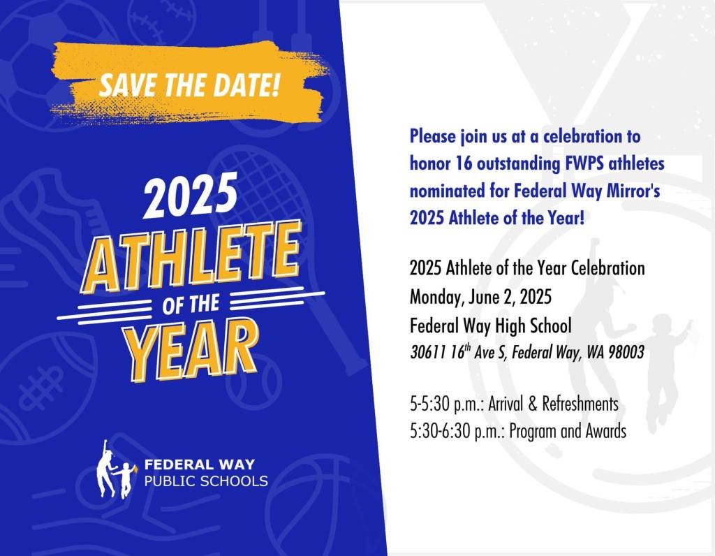 The winner will be announced at the Athlete of the Week ceremony at Federal Way High School on June 2, with refreshments beginning at 5 p.m. and the ceremony beginning at 5:30 p.m.