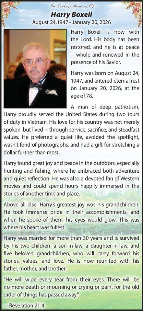 Harry Boxell is now with the Lord. His body has been restored, and he is at peace — whole and renewed in the presence of his Savior.