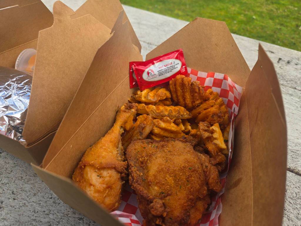 Their small but mighty menu focuses on their perfected fried chicken in several forms and classic sides of collard greens, cornbread or fries — along with their signature sauce.