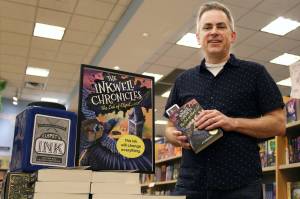 JD Peabody holds a copy of his recently released book “The Ink of Elspet,” the first in his new series titled “The Inkwell Chronicles.” The books are for sale and on display at the Federal Way Barnes and Noble.