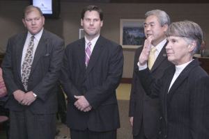Duclos joins the dais, while Dovey steps in as mayor