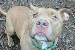 Khan is an 8-year-old male American Staffordshire terrier, about 60 pounds (ID #A089934). This handsome boy is very…