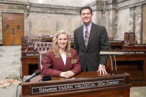 Todd Beamer High School student Karsyn Bryant (left) with Sen. Mark Miloscia. Bryant spent a week as Miloscia’s page in Olympia.