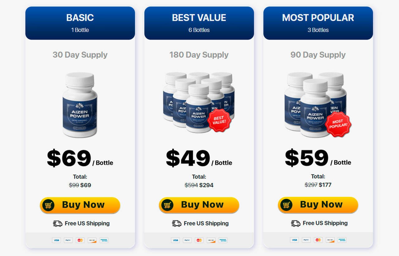 Aizen Power is currently available directly from the official online store. You won’t find this product on Amazon or health stores; it’s exclusively available from the site. You score massive savings when you buy Aizen Power on promotion, with even more significant discounts for bundle deals.