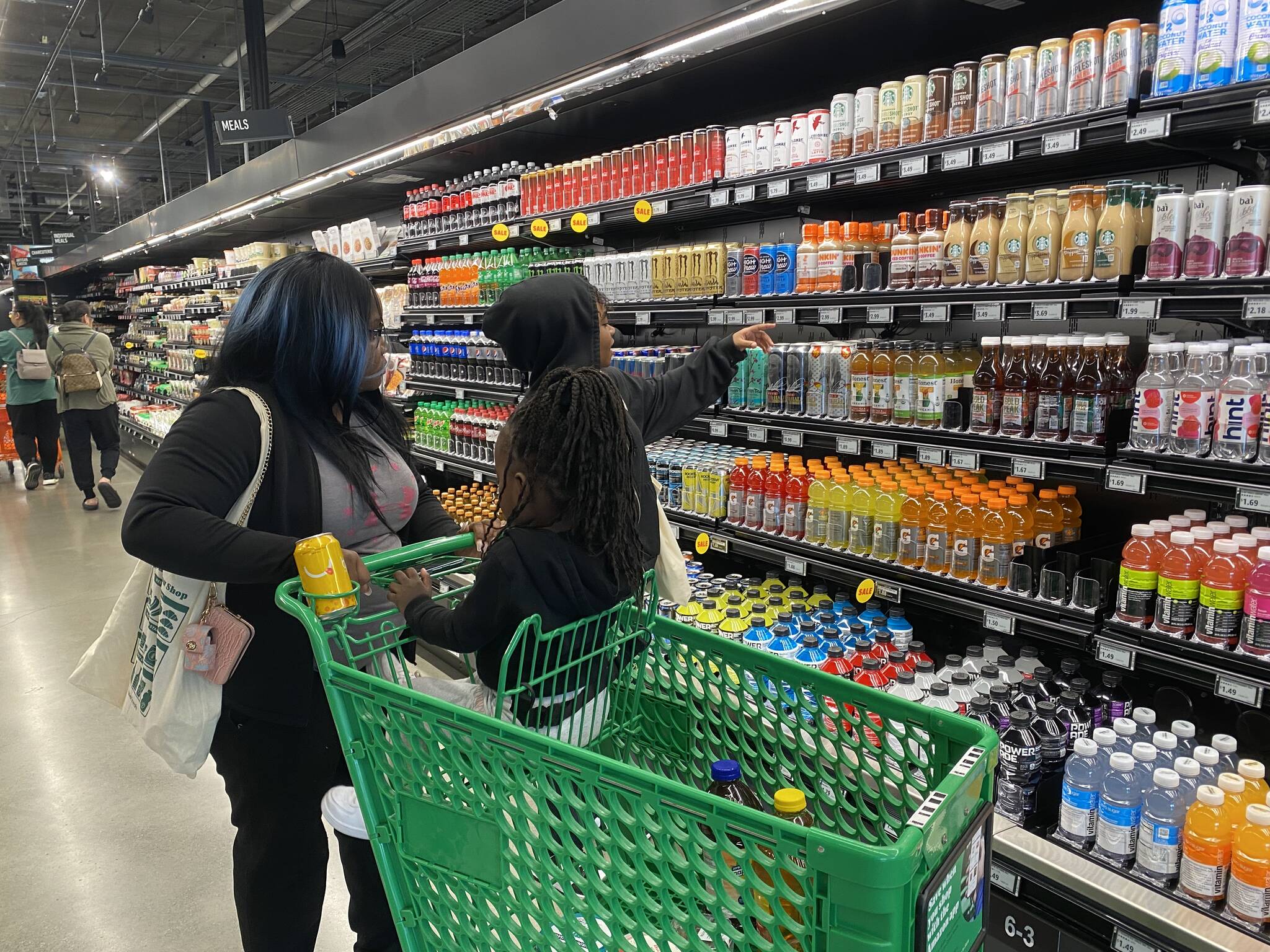 Inside the store, people pushed orange or green shopping carts around the produce section under the “Welcome to Fresh Federal Way” sign. Hundreds of sensors from the ceiling hang over every aisle throughout the store to track whichever items customers place in, or take out, of their carts.