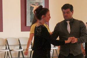 A historical black-and-white photo hangs just inside the office of Arthur Murray Dance Studio Director Tina Marie’s office.