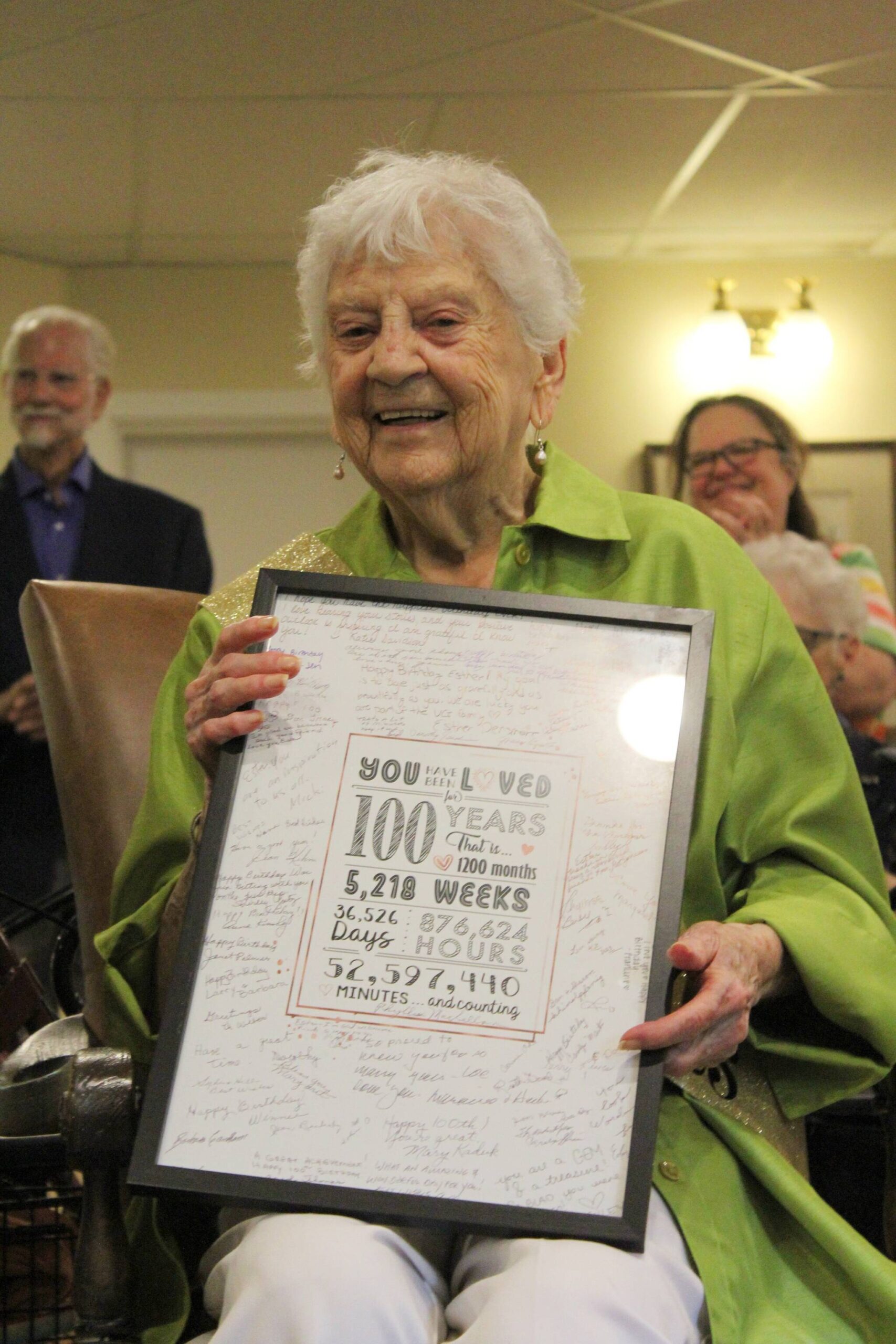 “Maybe I know something about 100 years old, that most of you don’t know,” said Thoennes, who turned 101 last year. “I felt humbled and honored. And I think Esther feels the same way, that so many of you showed up here — so many friends and family.”
