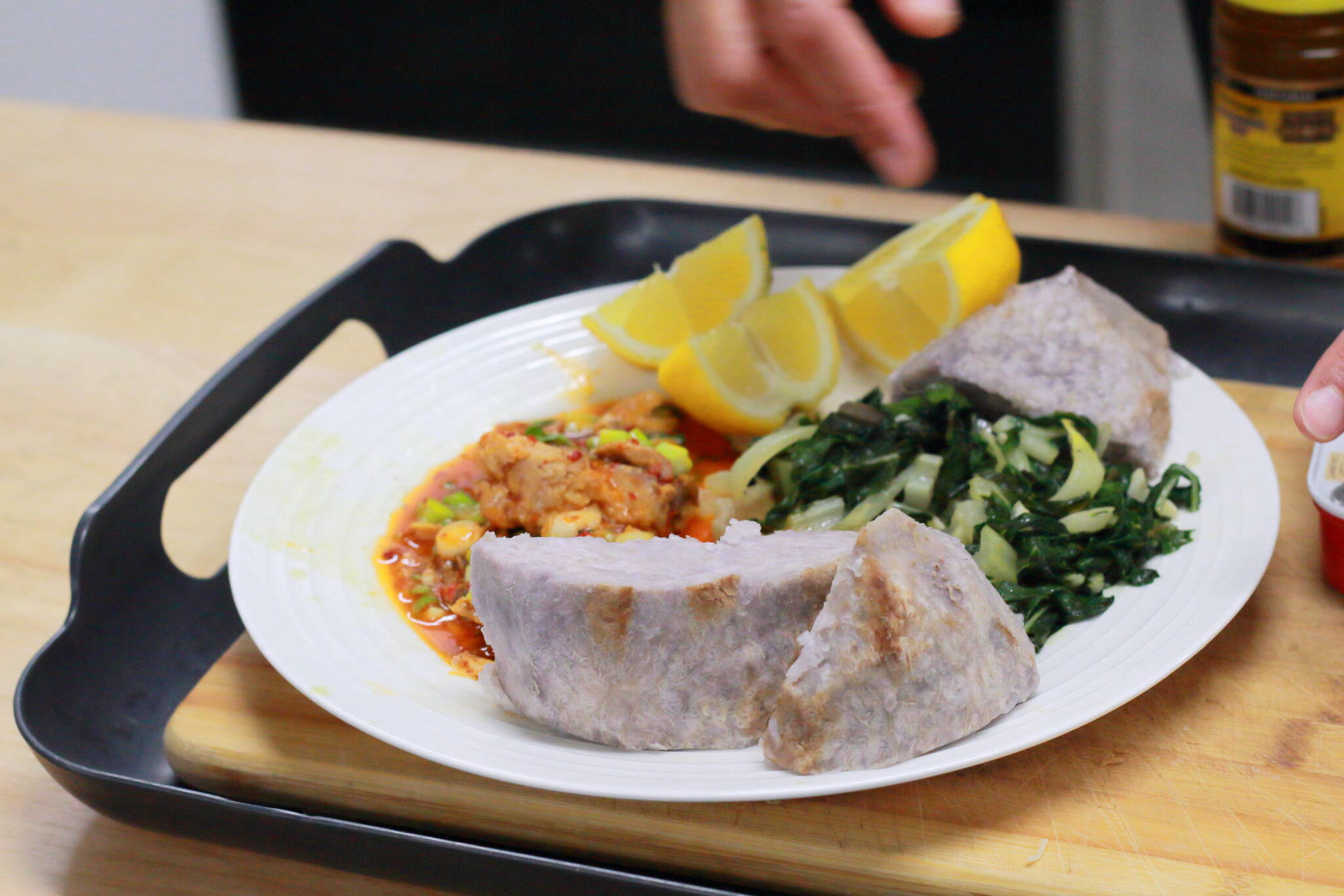 She recently partnered with NW Kidney Center to host a cooking class. She prepared the leafy green chard the same way she would traditionally prepare bok choy in Fijian cuisine and showed how to use mackerel like they might cook a fish from home. The meal was rounded out with some taro that needed to get used before it went bad.