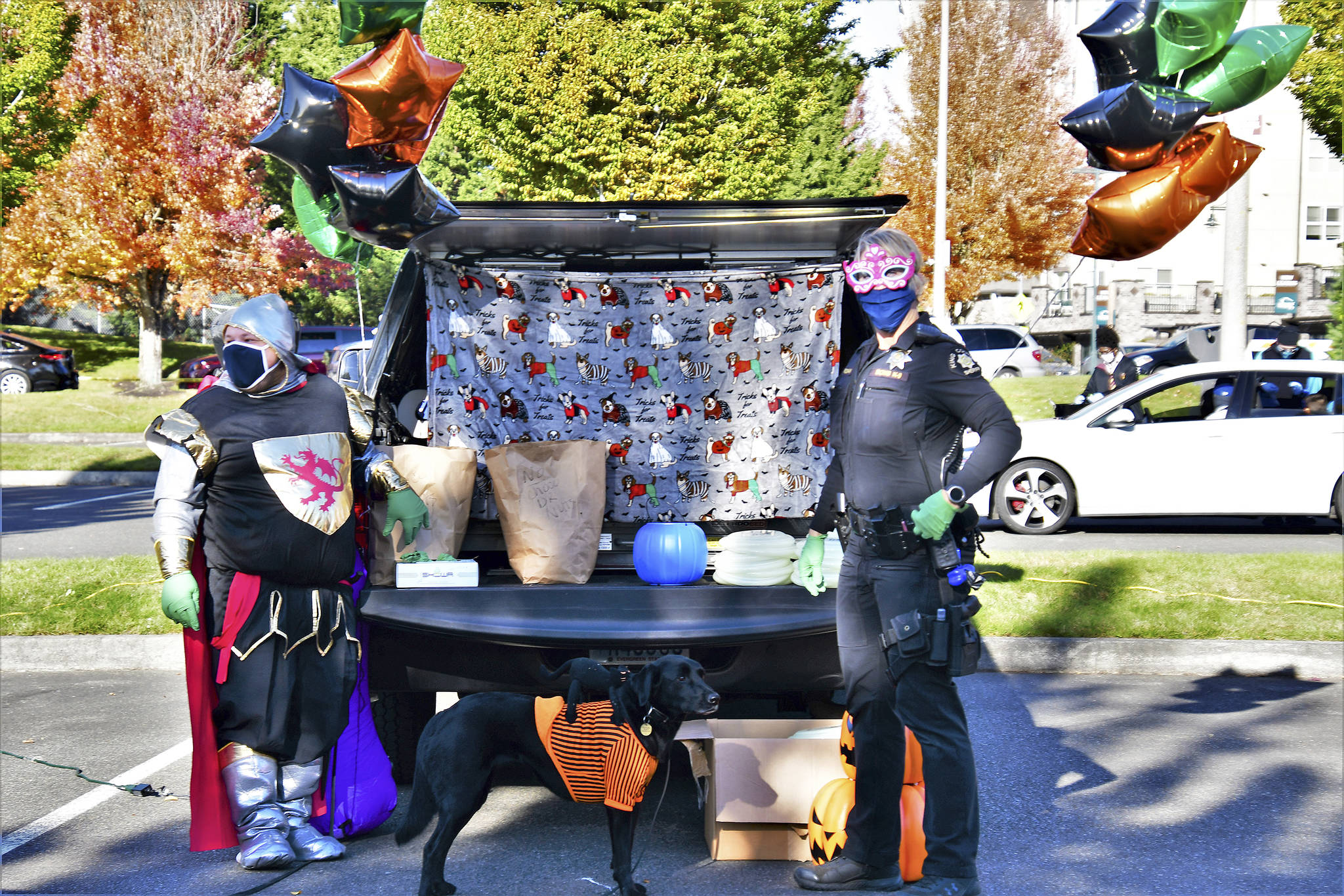 At the final day of the 2020 Federal Way Farmers Market’s season, a dozen of the best costumes won contest prizes. Later in the afternoon at Celebration Park, agencies throughout Federal Way loaded up their vehicles for a drive-through “trunk or treat.”