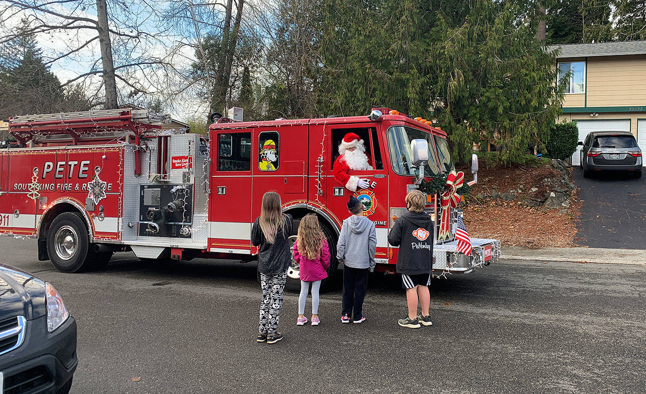 Over the course of a weekend, Santa Claus and Mrs. Claus accompanied South King Fire members and City of Federal Way employees on a tour Dec. 4-7 throughout various local neighborhoods, riding in engines decked with Christmas lights.