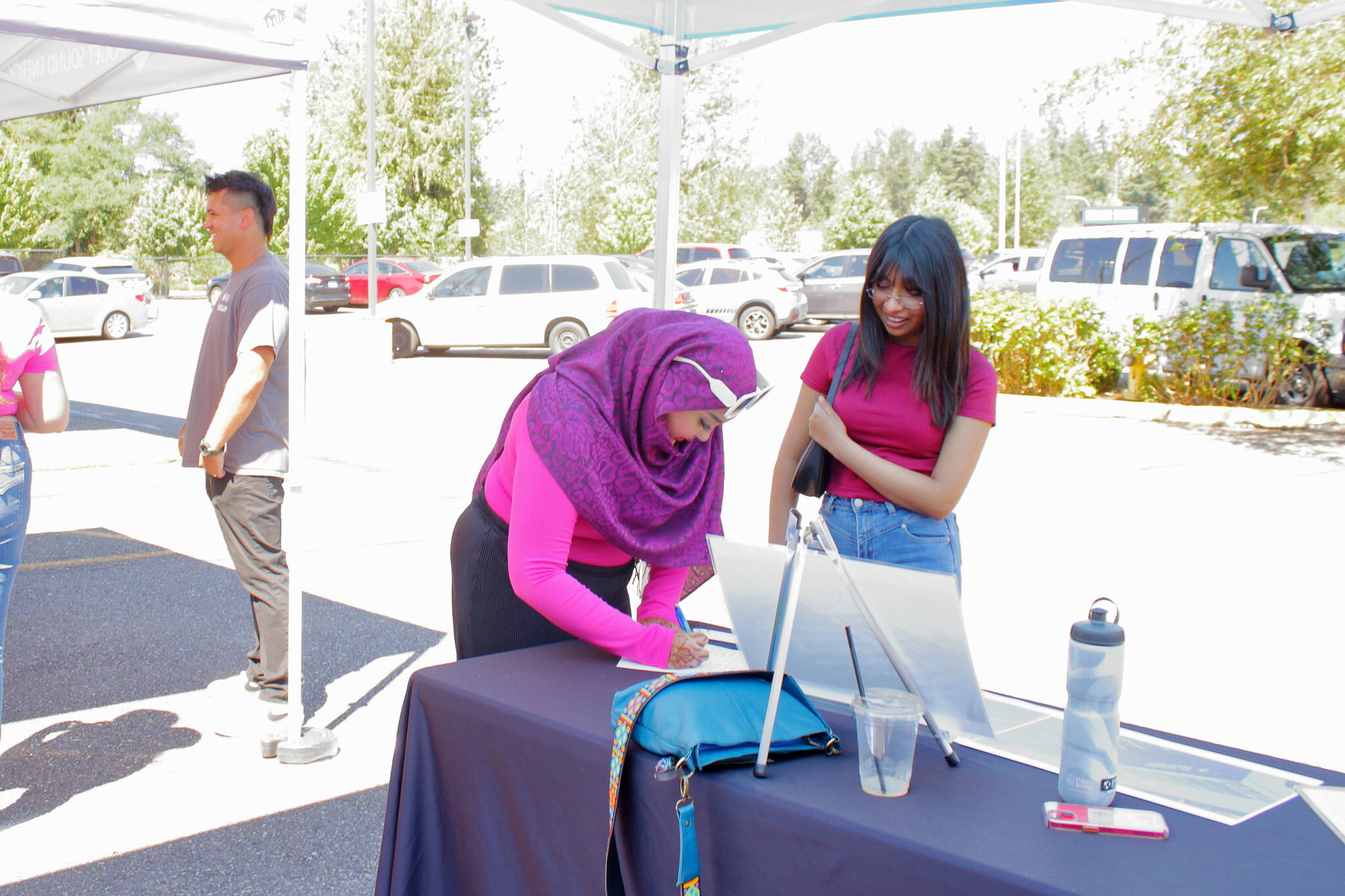 Guests fill out interest forms for a 200 hour training program for work in the solar industry through Sphere Solar Energy. Photo by Keelin Everly-Lang / the Mirror
