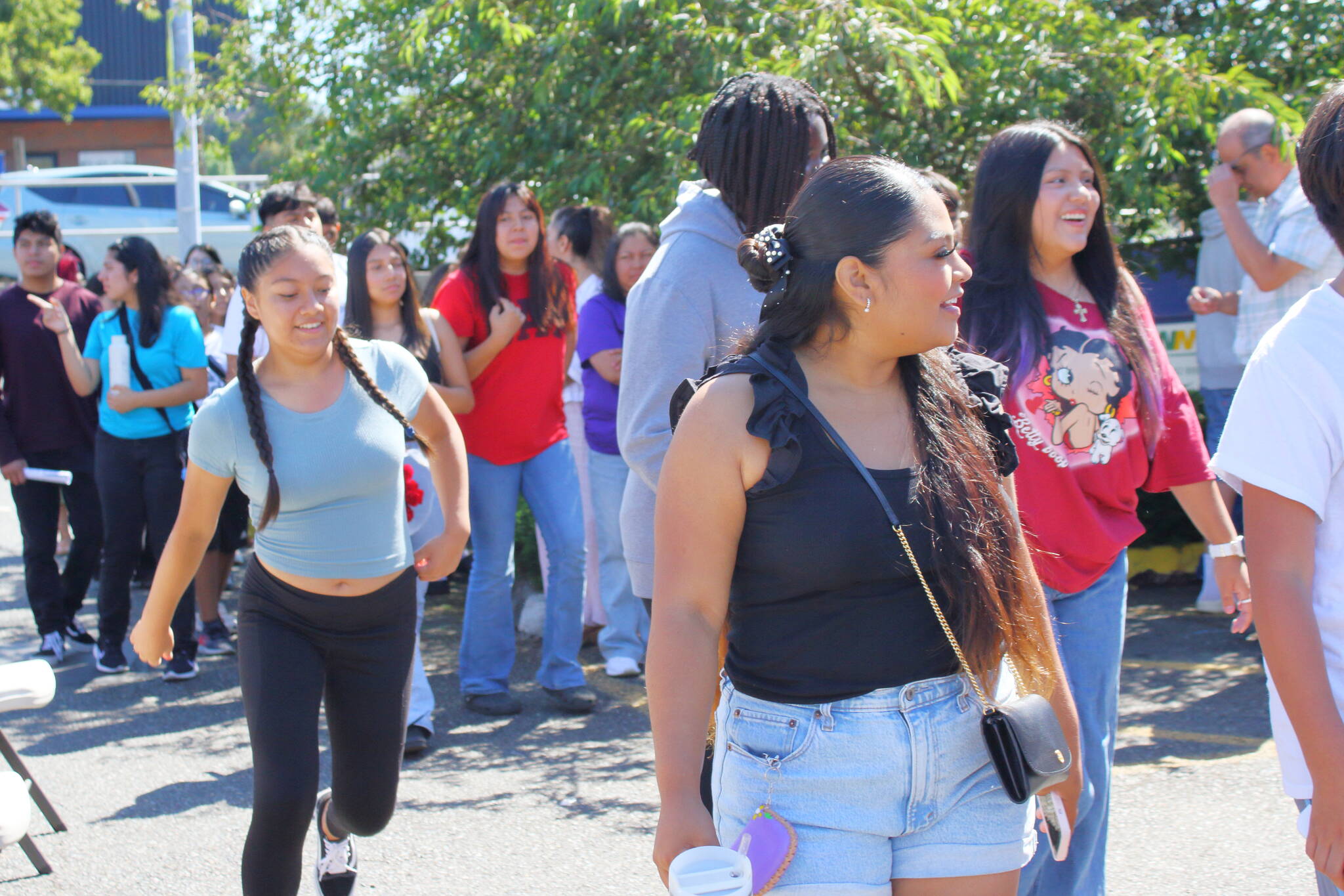 Youth involved in El Centro de la Raza programs head to the rink to skate after joining the ribbon cutting celebration for the new solar panels at the El Centro Skate Rink. Photo by Keelin Everly-Lang / the Mirror