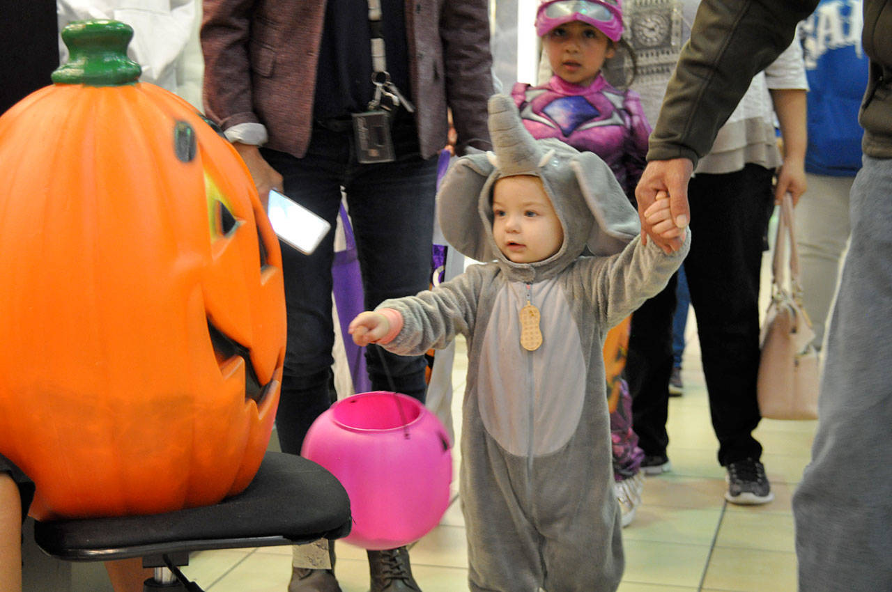 Hundreds of children dressed in their Halloween costumes wandered around The Commons on Tuesday night collecting candy from stores in the mall.